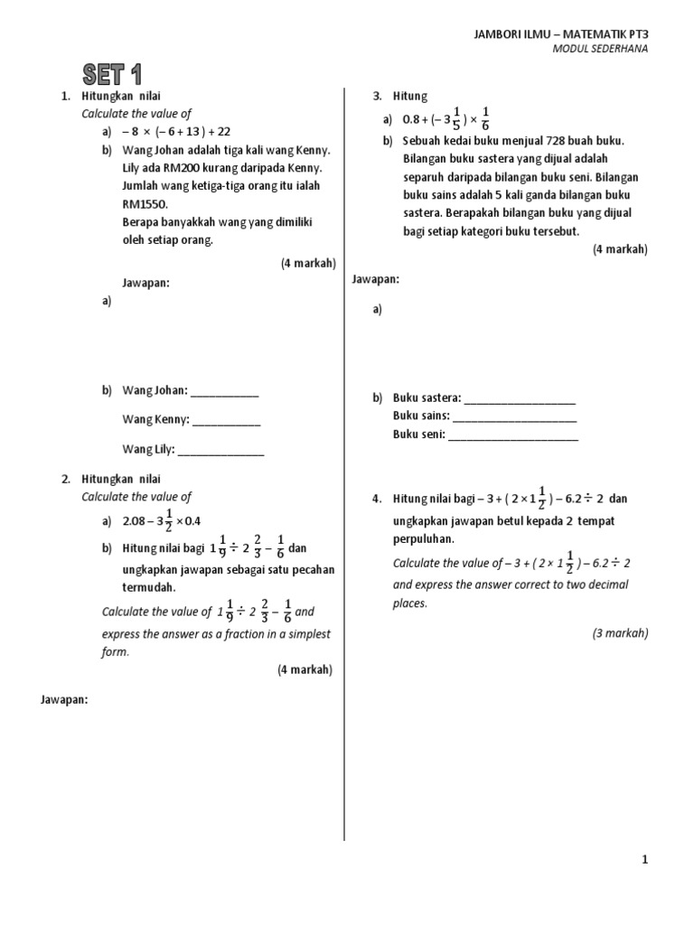 . Contoh Soalan Matematik PT3 Terkini. Februari 4 2022. Bahasa melayu bm inggeris matematik sains rbt Kerja kursus sejarah pt3 2019 contoh jawapan.